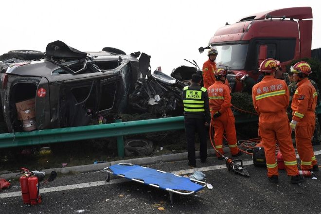 La agencia oficial de noticias Xinhua reportó que el accidente ocurrido el miércoles por la mañana en Fuyang, una ciudad en la provincia de Anhui, provocó que varios vehículos se incendiaran.
