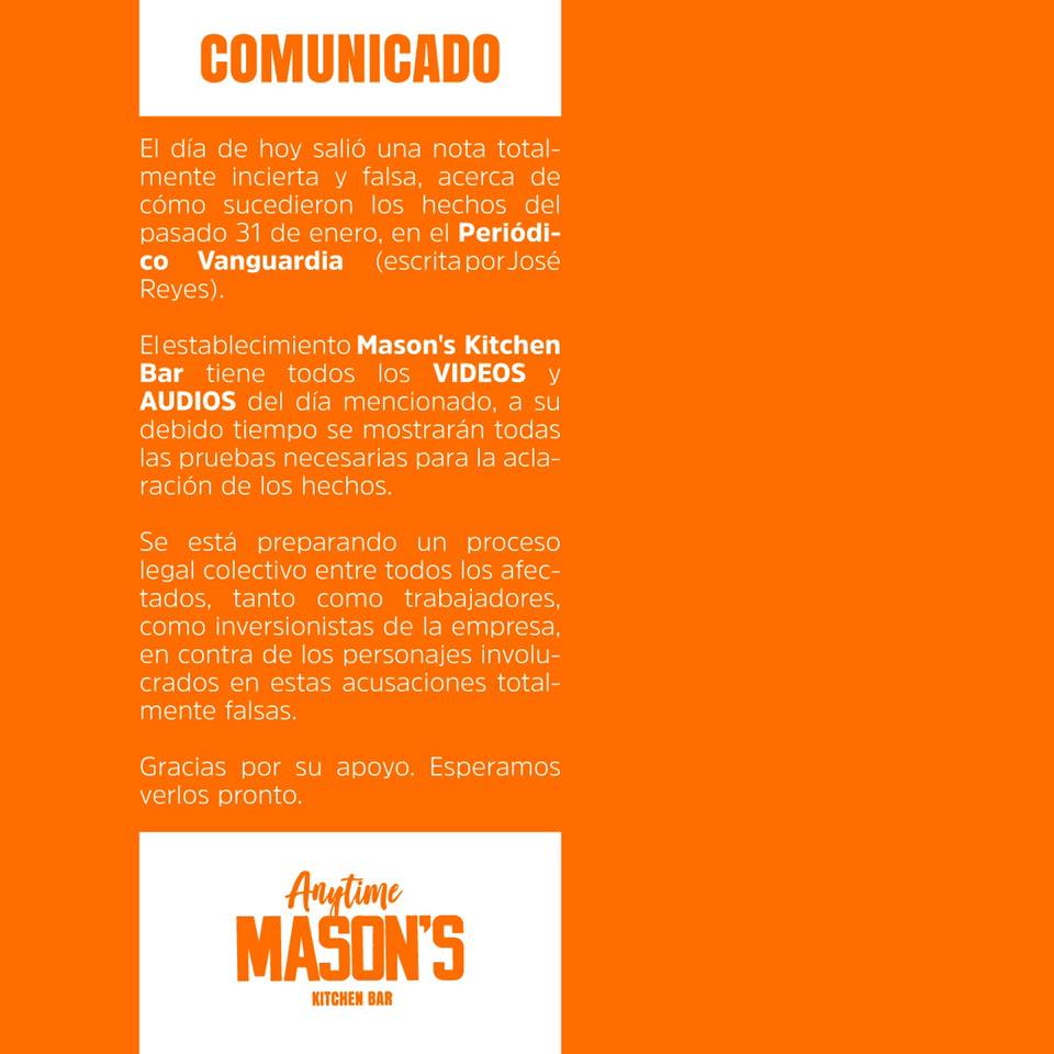 Hace apenas unas horas el local sacó un comunicado en su página de Facebook, donde hace ver su postura al respecto.