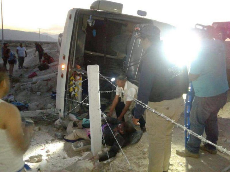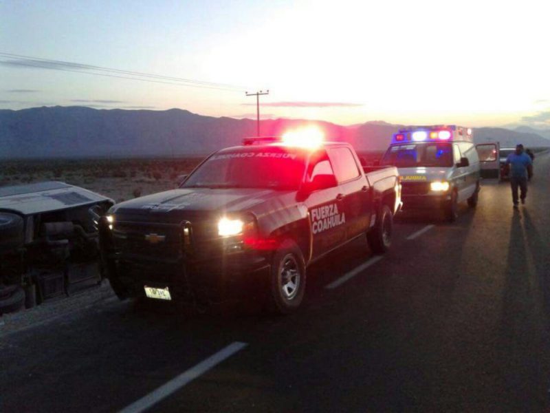 Monclova, Coahuila.- Un camión de pasajeros volcó en la carretera 30 de Cuatrociénegas a San Pedro a la altura del kilómetro 145, en el lugar perdieron la vida siete personas entre ellos cuatro menores de edad.