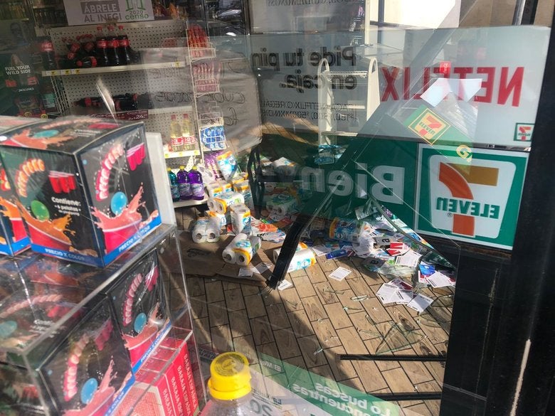 Al querer estacionarse en el negocio asegura que le fallaron los frenos y fue chocar contra la puerta de aluminio y cristales.