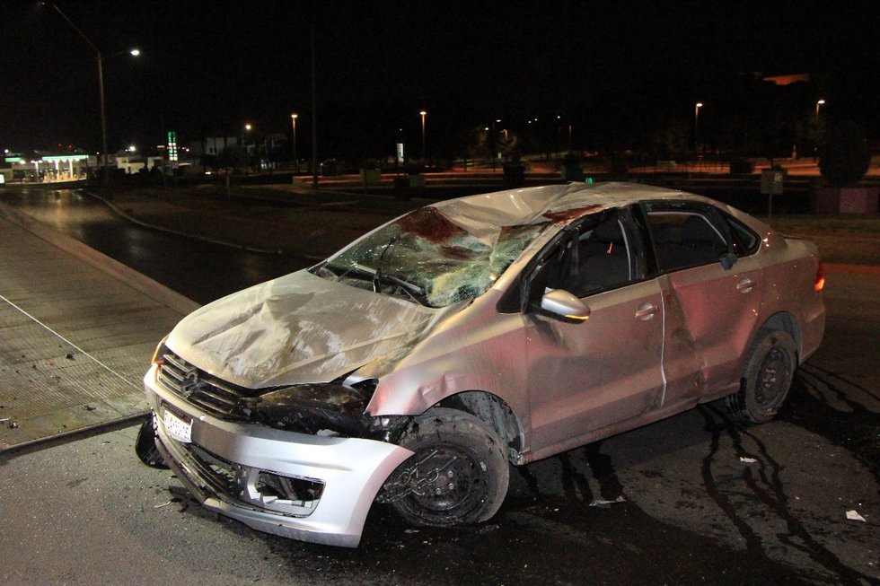 Con la velocidad que llevaba y el la fuerza del impacto Carlos usó la estructura del puente para volcar, destrozando por completo su vehículo mientras que el se raspó con el parabrisas la cabeza, esto al no portar el cinturón de seguridad.