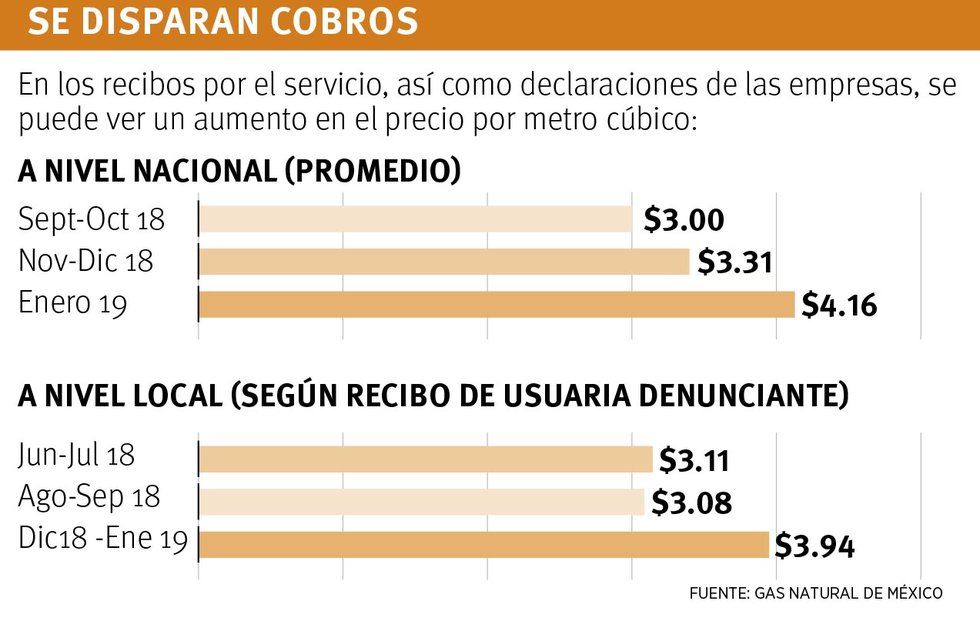 Según datos reportados por esta compañía, el metro cúbico de gas pasó de 3.00 a 4.16 tan sólo entre septiembre del año pasado y enero de este año.