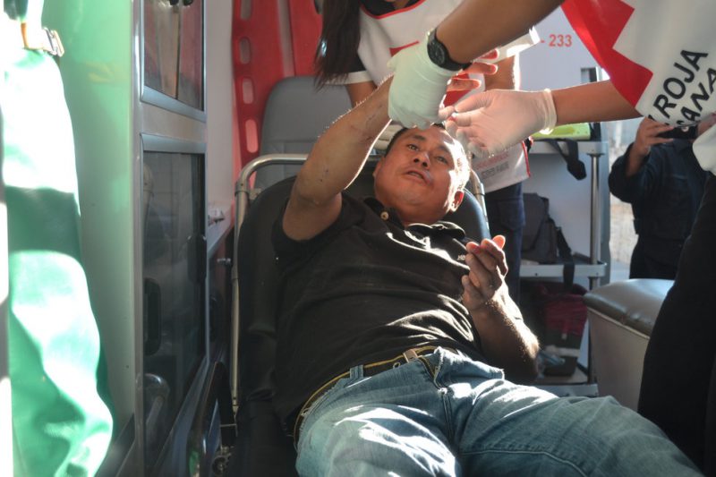 A pesar de lo que se había denunciado, fue a Gabino a quien los paramédicos subieron a la ambulancia, pues sufrió varios golpes de parte de su pareja, quien con un palo se defendió de los ataques.