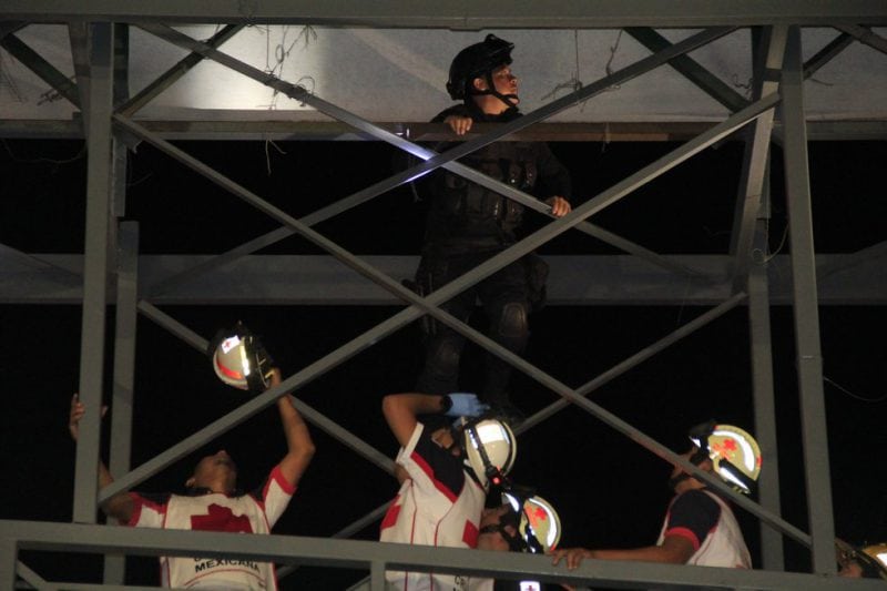 Mientras las horas pasaban los oficiales limitaron la circulación de norte a sur del periférico, para evitar que cayera arriba de un automovilista en caso de que Sergio se aventara, por lo que pasaron horas de negociación.