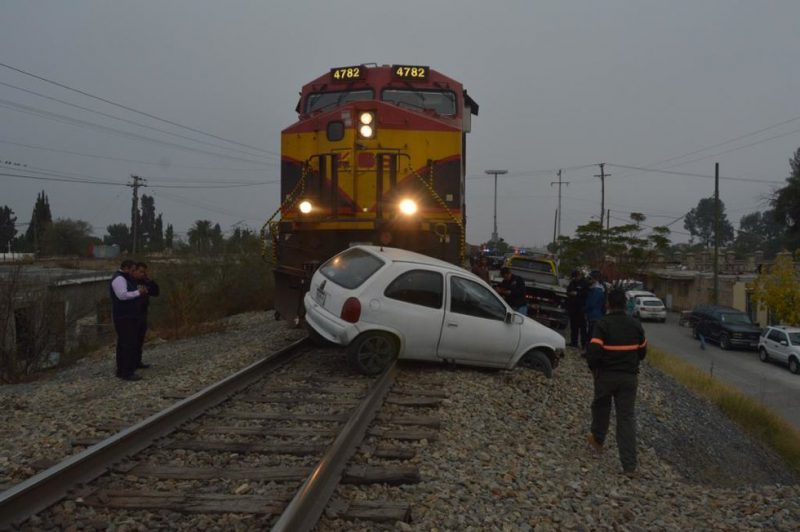 Saltillo.- Madre e hijo terminaron lesionados luego de que el coche en el que viajaban fue embestido por el tren, esto en la calle Lerdo de Tejada y Bordo del Ferrocarril, de la zona centro.