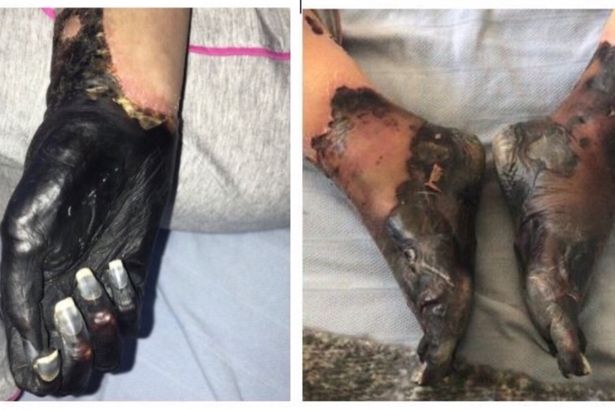 Su condición llegó a tal grado que ya presentaba gangrena avanzada en manos, pies y en la punta de la nariz, por lo que, luego de permanecer 11 días en coma en el hospital Royal Papworth, en Cambs, tuvieron que amputarle las piernas por debajo de la rodilla y la mano.
