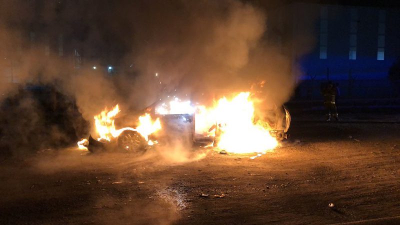 Fueron los encargados de seguridad de la empresa quienes al escuchar explosiones sobre prolongación Isidro López salieron a ver qué ocurría y al ver el auto en llamas llamaron de inmediato al 911.