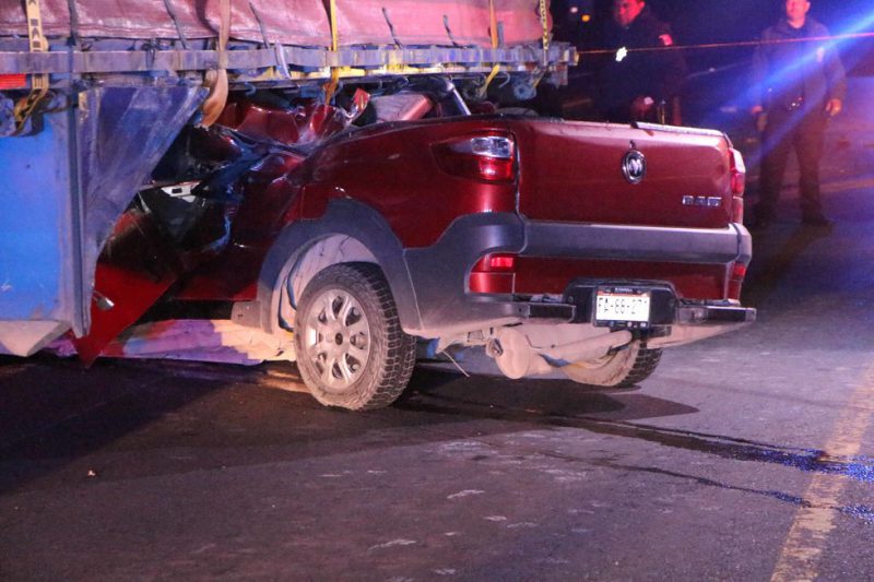 La camioneta terminó debajo de la plataforma, misma que los arrastró a una distancia superior de cinco metros, donde perdieron la vida al instante.