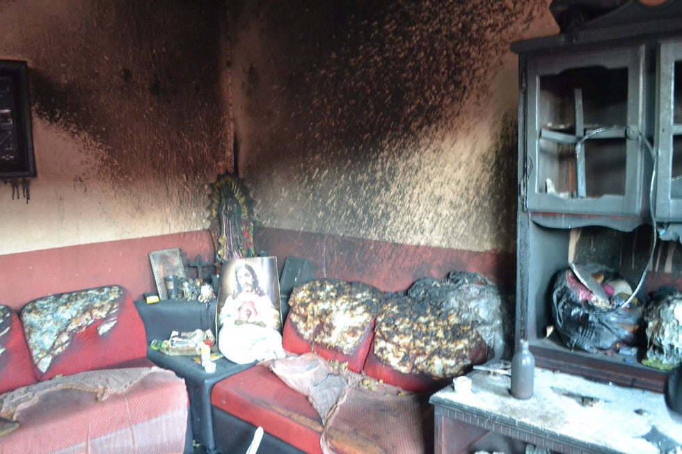 El fuego consumió el cuarto de enfrente, por lo que el hijo de Leticia resultó con quemaduras en las manos, cara y cabello.